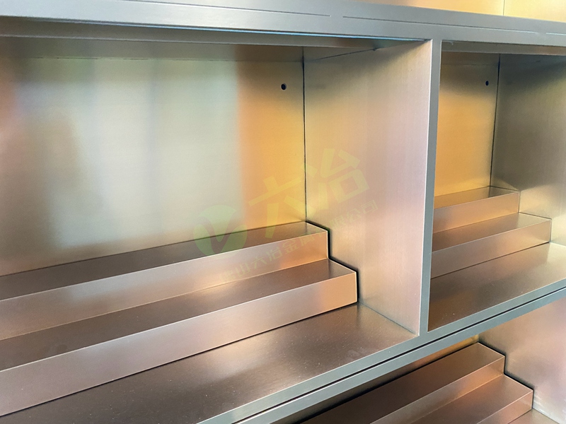 廣東佛山市有很多不銹鋼恒溫恒濕酒柜定做廠家,酒柜其實可以算做是展示柜的一個類別,所用到的工藝包含:剪折刨、圍邊、焊接、鍍色、激光等,常規(guī)顏色有:香檳金、鈦金、黑鈦、仿木銅、木紋等。