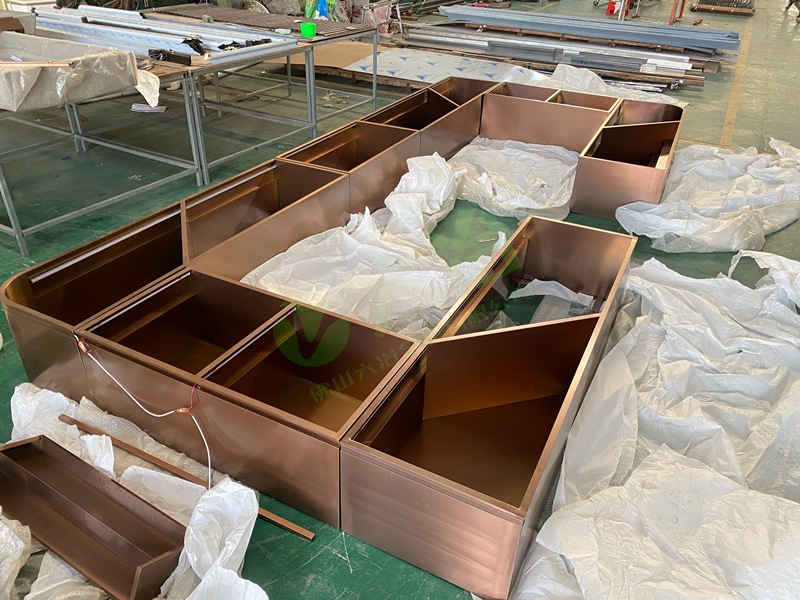 不銹鋼材料可以使用304材質(zhì)或者316材質(zhì),表面可以是8K鏡面、拉絲、磨砂、噴砂、鍍色、木紋等。像酒店、餐廳、商場、超市等場所,玫瑰金8K鏡面選用的比較多。其次還有:青古銅拉絲、黃古銅拉絲、紅古銅拉黑絲、電鍍紅古銅拉絲等。